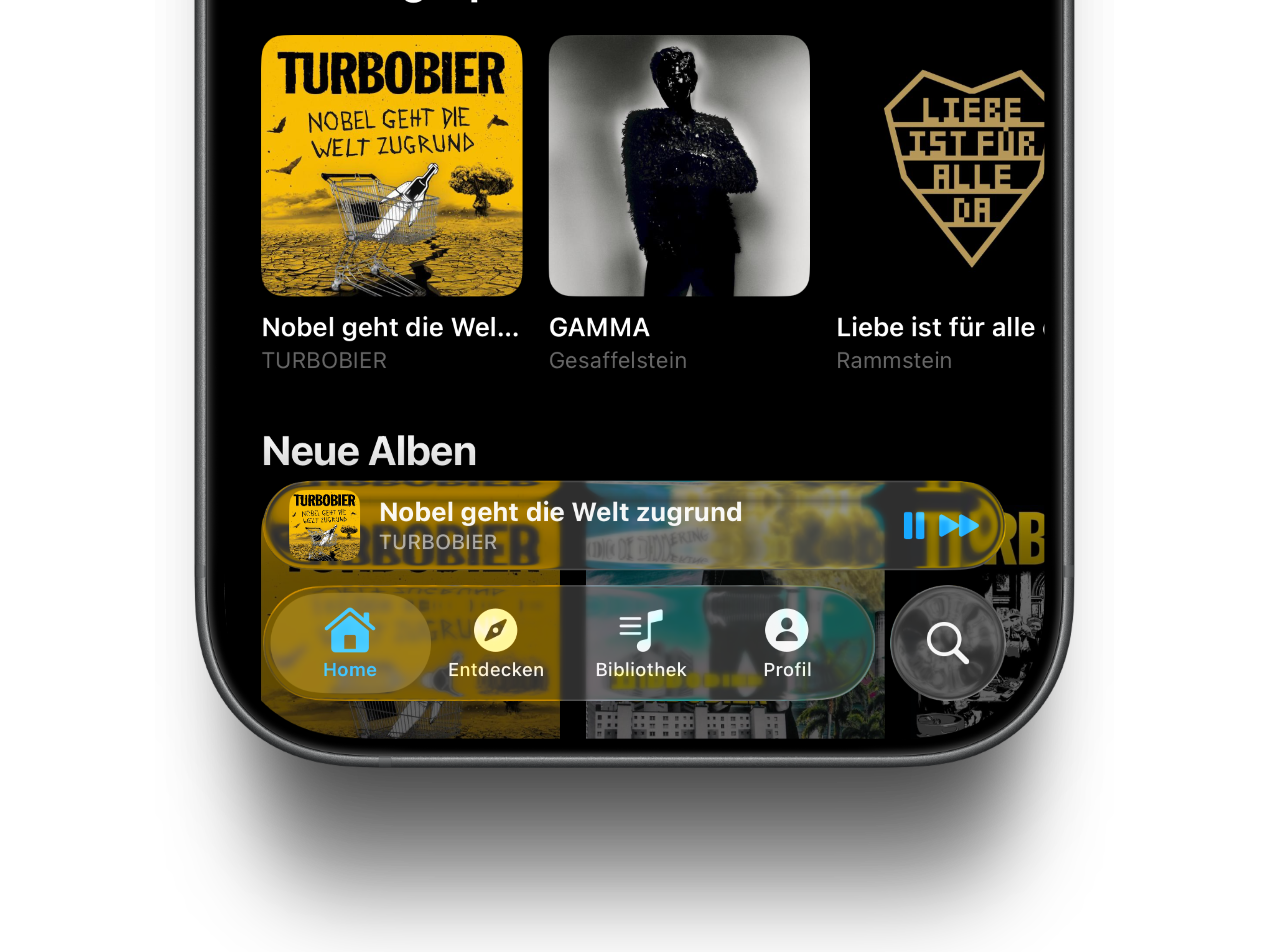 Egal wo du gerade bist — der Mini-Player bleibt am unteren Rand. Tipp drauf und der volle Player springt auf. Wisch nach oben und du siehst die Warteschlange. Mehr brauchst du eigentlich nicht.