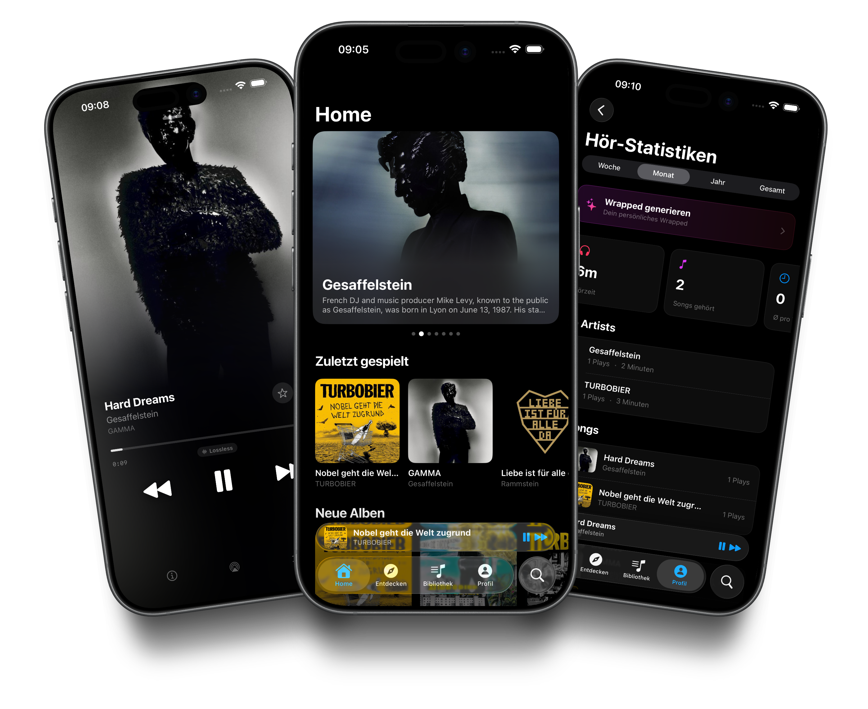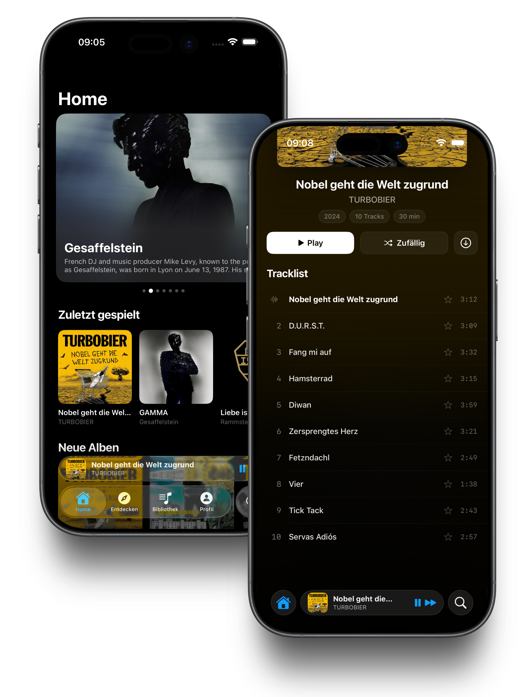 Darktone ist für Musik, die du wirklich besitzt. Wenn du daneben streamst, behindert dich keiner — die Apps kommen sich nicht in die Quere.